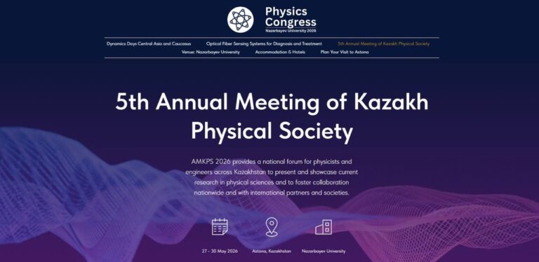 Kazakh Physical Society invites you to participate in the 5th Annual Conference of the Kazakh Physical Society, which will be held from May 27-30, 2026, at Nazarbayev University (Astana).